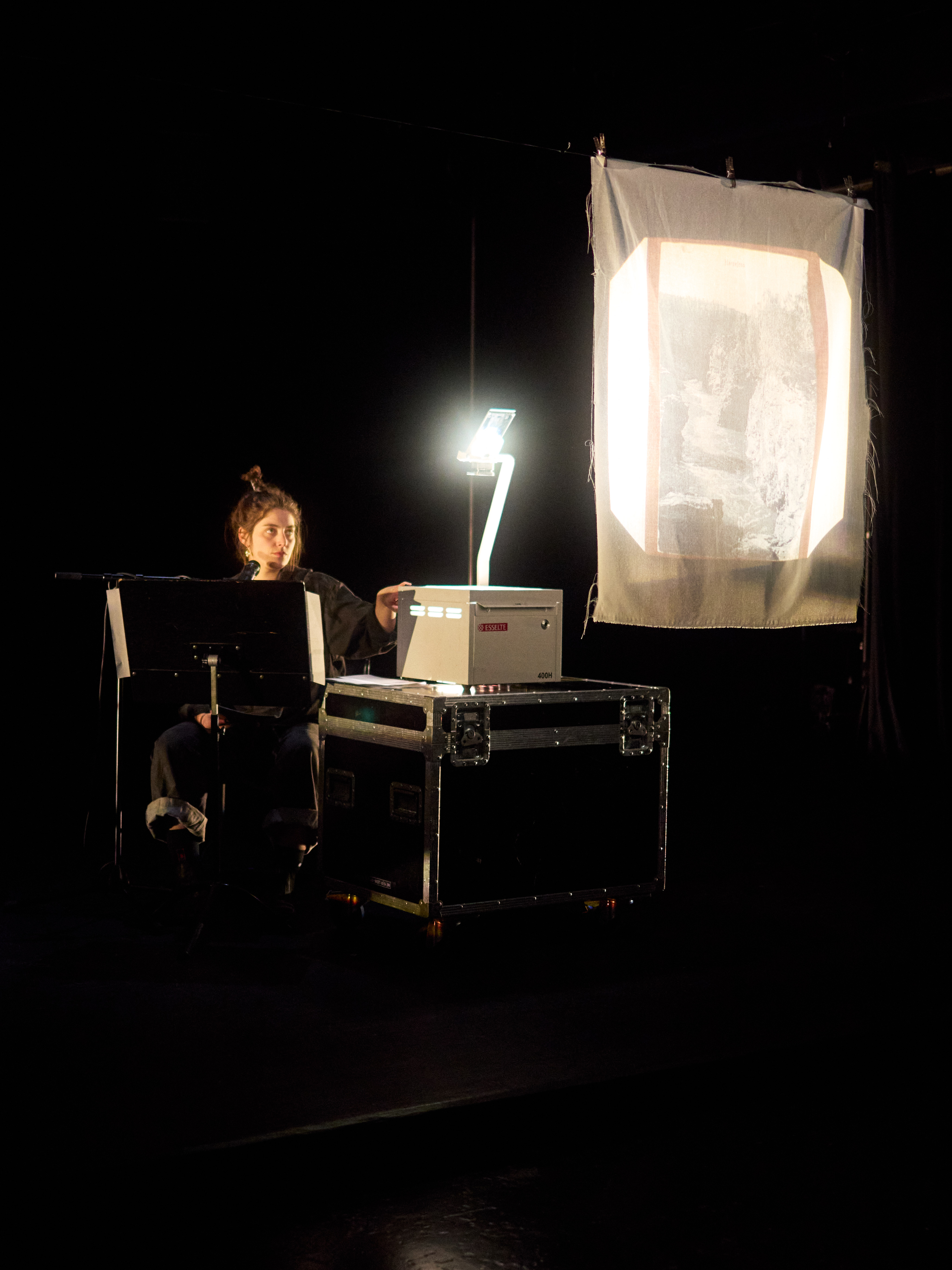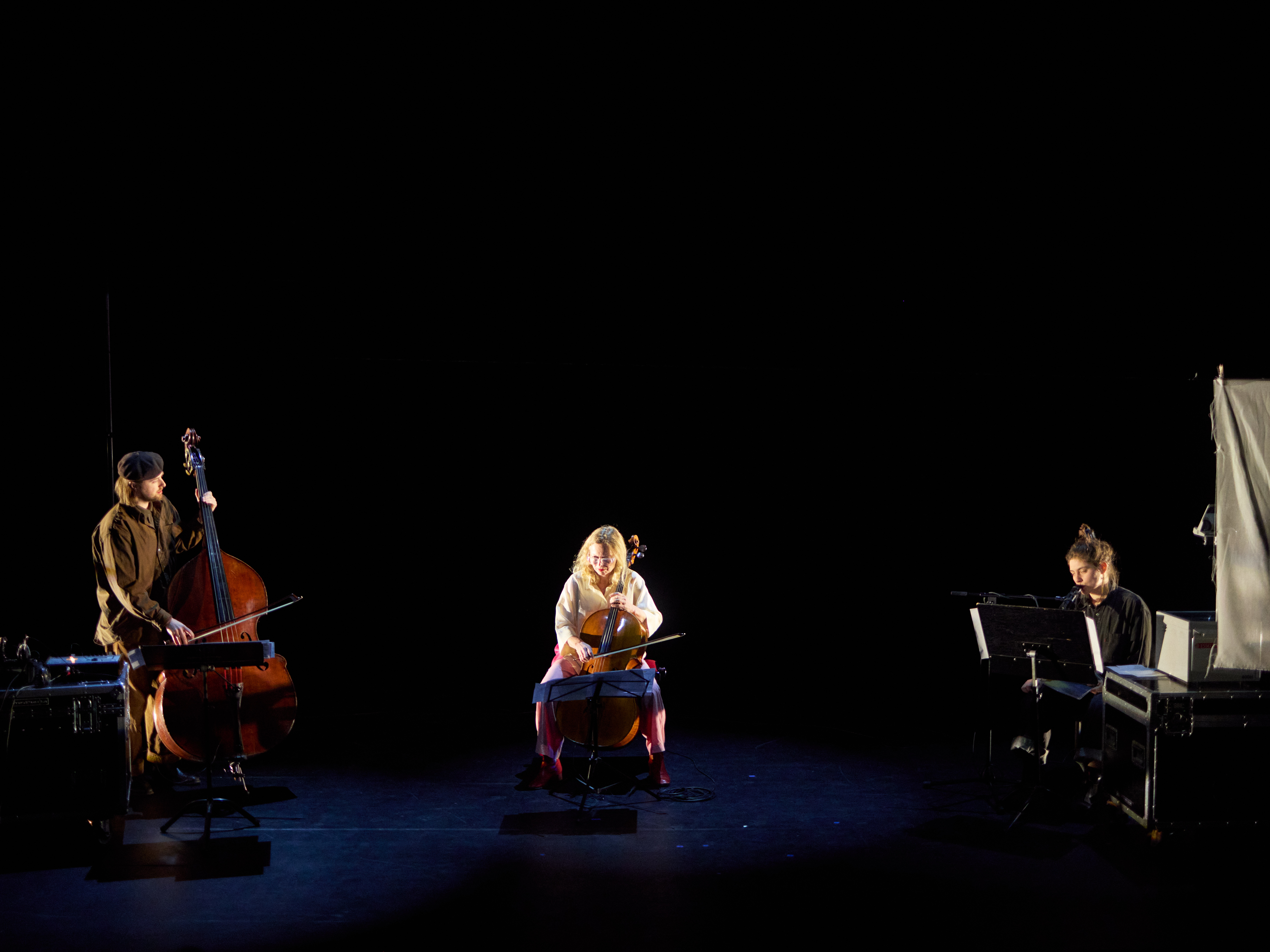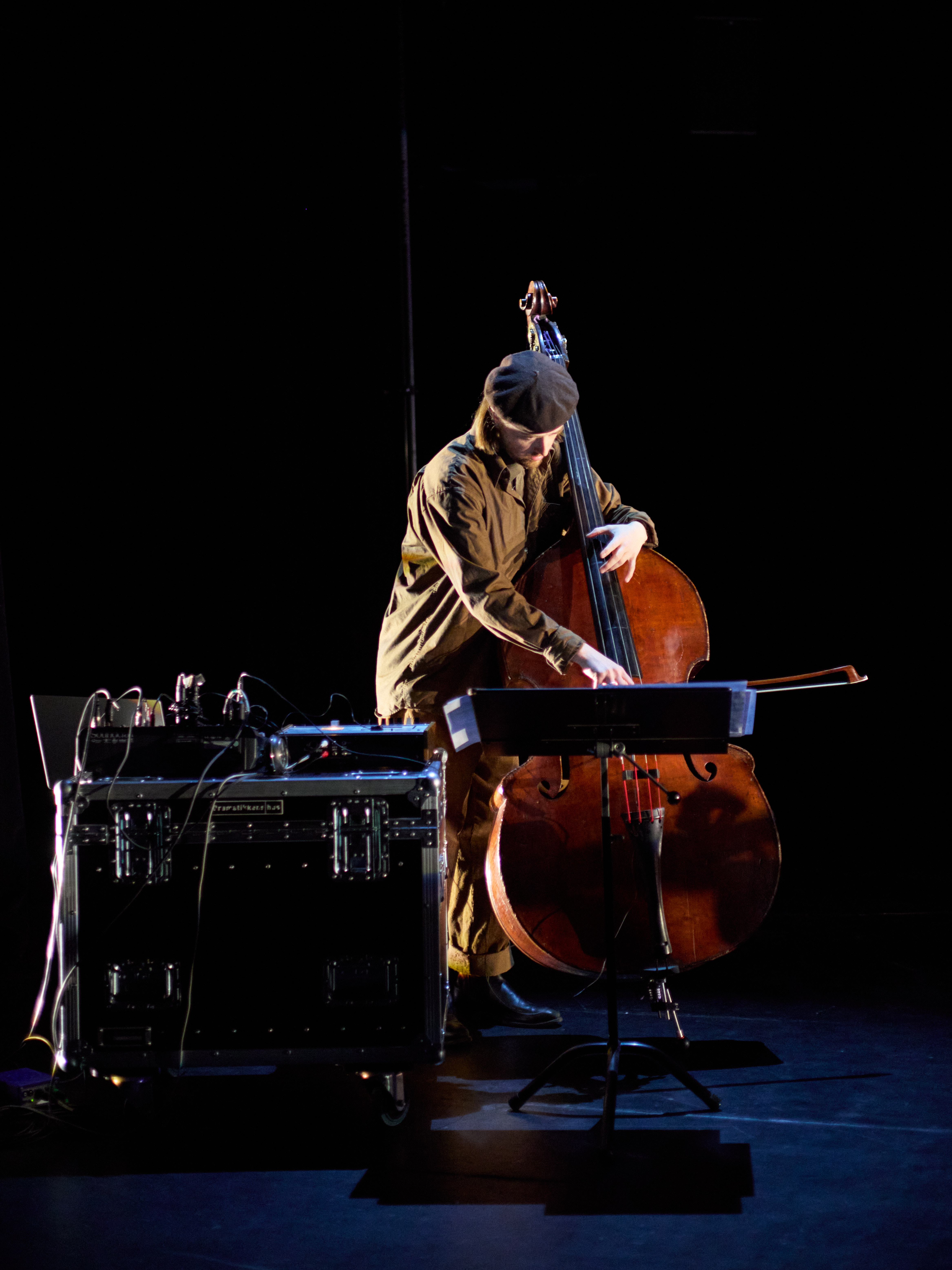 Composer and double bassist John Andrew Wilhite creates interdisciplinary work exploring the borders between sound, meaning, and memory. Signal Cloth/Three Cartographic Blinds was originally a site-specific piece for Harpefoss Hotell's Okulus Symposium, with an amplified string quartet and recorded voices encountered by audiences walking through the landscape. This experimental adaptation for string duo (Tanja Orning and Wilhite) with live voice (Natali Abrahamsen Garner) explores questions of place when adapting a site specific work to a theatre setting.