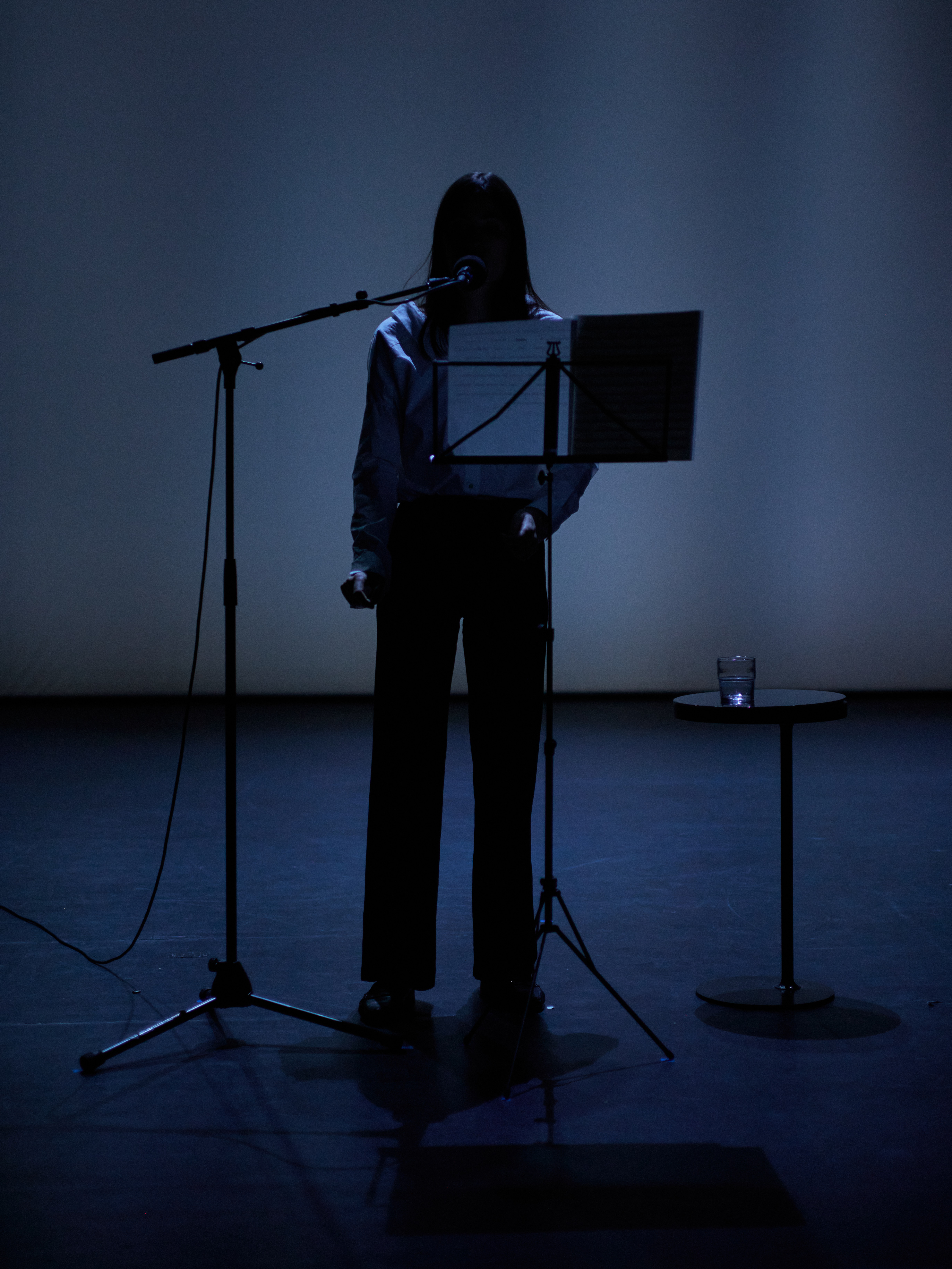 Adrienne Herr is an artist and poet whose practice explores the plasticity of speech. By delaying, stretching, stuttering, breaking, and juxtaposing phonetic components, she disassembles phrases and words. Regarding the voice as a tool for the production of authenticity, she develops polyphonic compositions to explore and subvert this vis-à-vis quick juxtapositions and reenactments of speech in multiple contexts and role plays. Through exhaustive scoring methods, her work illustrates a perceptual slippage between the immediate and the reproduced or staged.