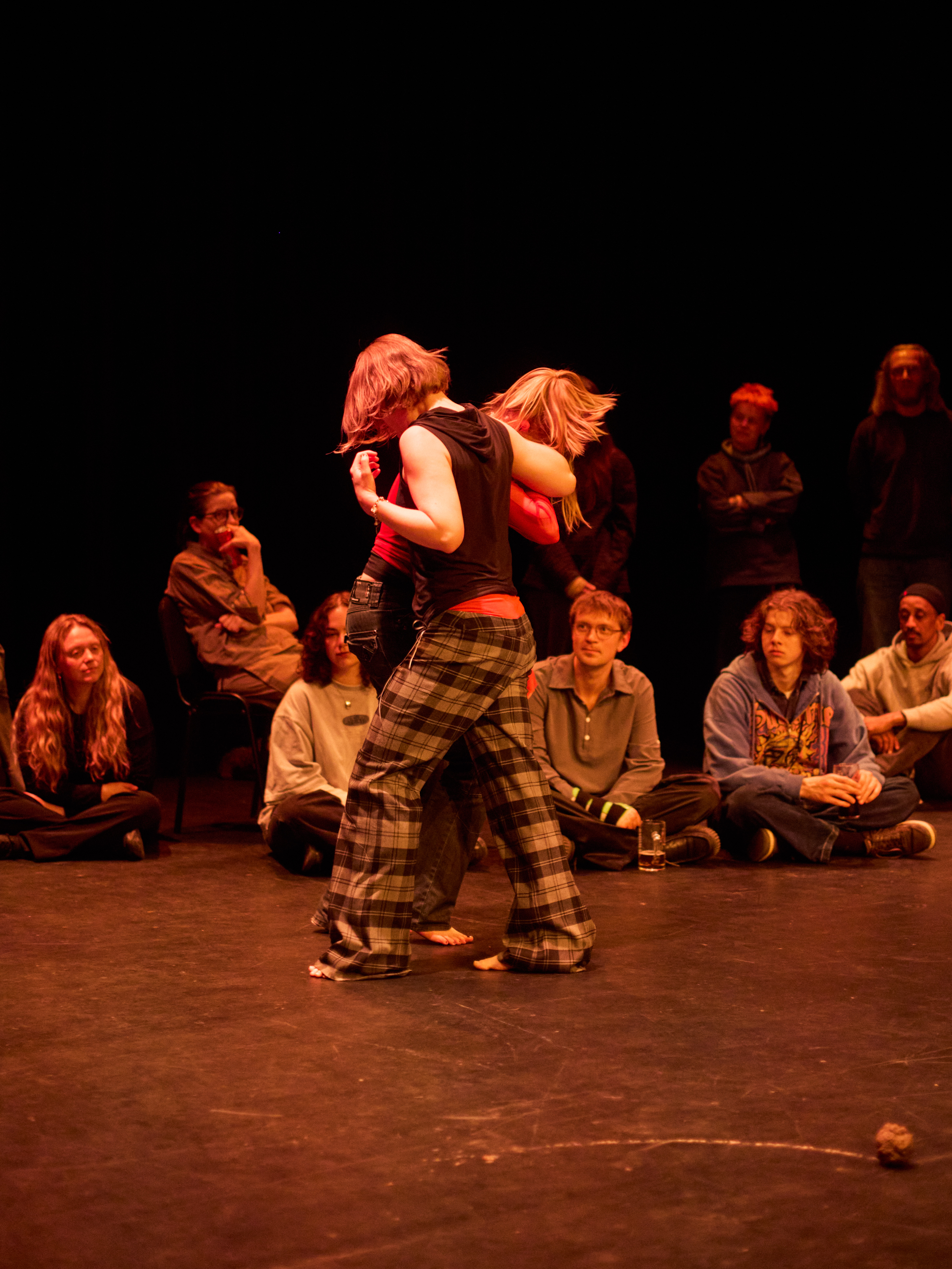 Jennie Bergsli (NO) and Molly Engblom (SE) work across dance, choreography, performance, and visual art. Crushmodes is the working title of their ongoing project, moving through cracks and spaces where emotion, body, and material interact. The project develops choreographic proposals through dance, sound, and non-human actors, drawing inspiration from social dances where movement is shaped by affect, collective interaction, and physical intensity.